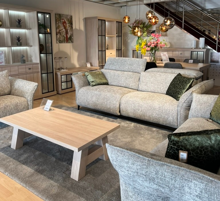 Deze past perfect samen met de lichtgrijze salon Porto. Een luxe 3-zit met ingebouwde relaxen te combineren met een clubzetel of 2-zit.