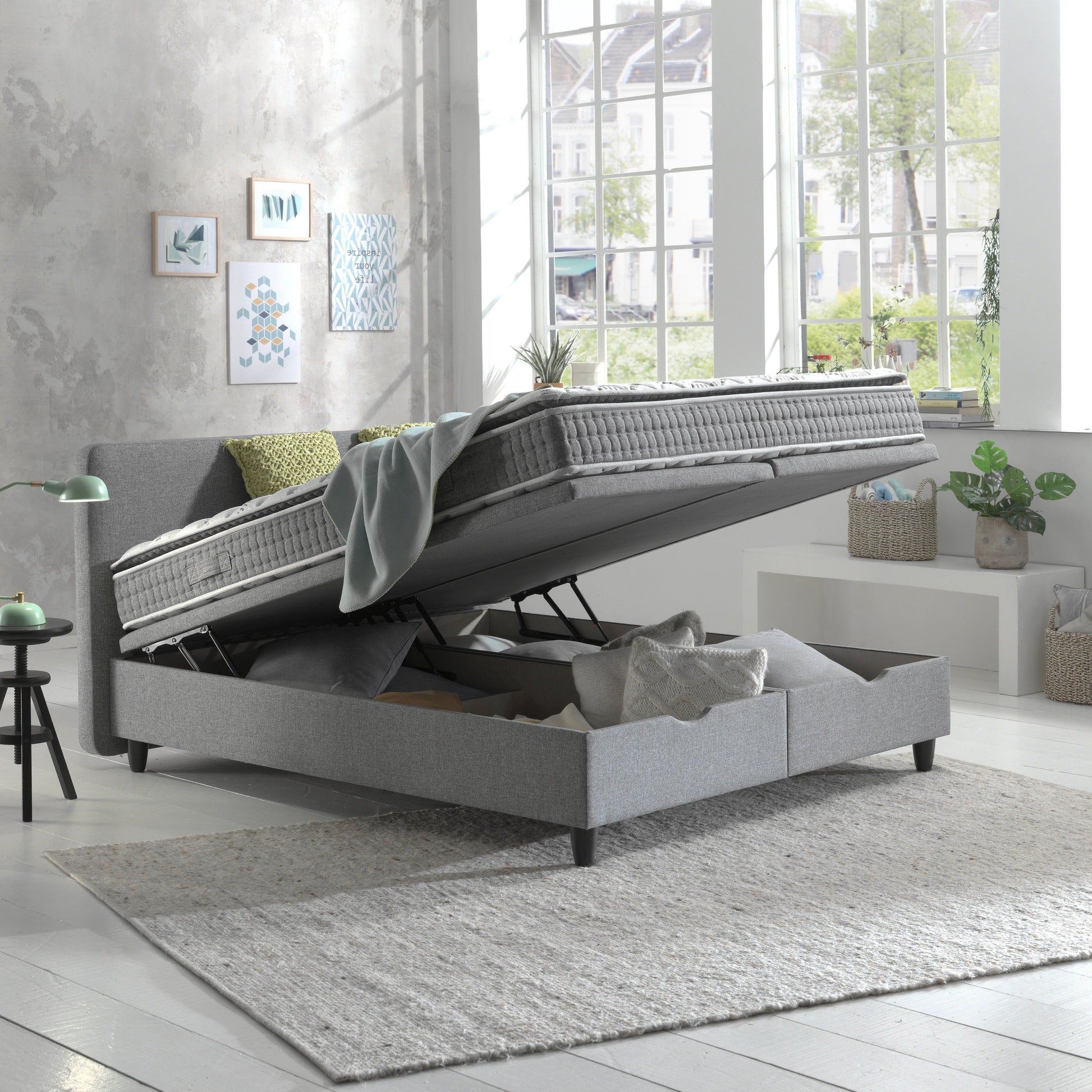 Wat deze boxspring echt bijzonder maakt, is de slimme opbergruimte. Dankzij het eenvoudige openingsmechanisme kun je de boxspring openen en benut je de verborgen ruimte optimaal om dekens, kussens of andere spullen netjes op te bergen.
