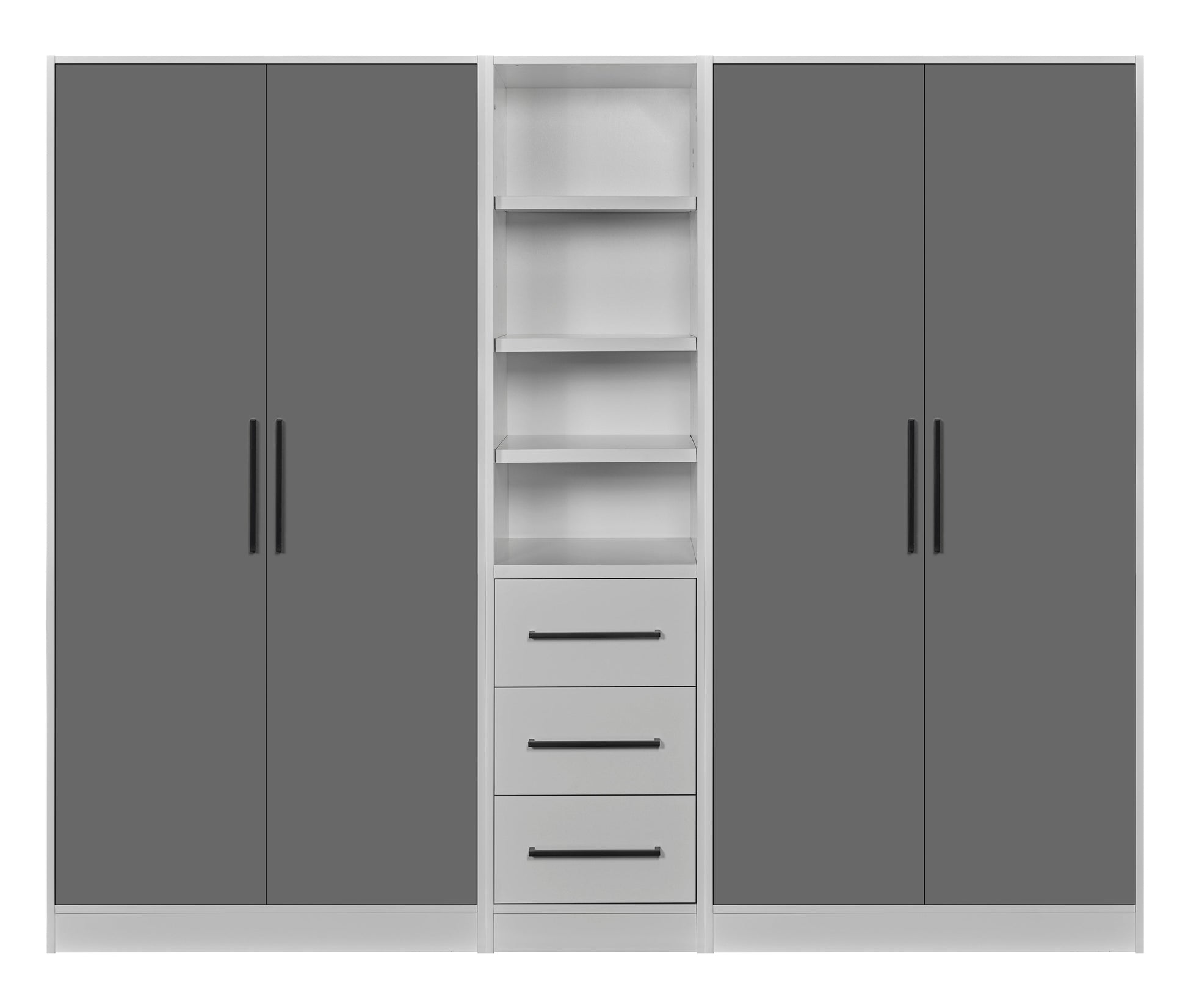 De deuren zijn beschikbaar in stijlvolle kleuren wit of antraciet, zodat de kleerkast moeiteloos in jouw interieur past. Het minimalistische design en de hoogwaardige afwerking maken deze kast niet alleen functioneel, maar ook een elegante toevoeging aan je slaapkamer of dressing.