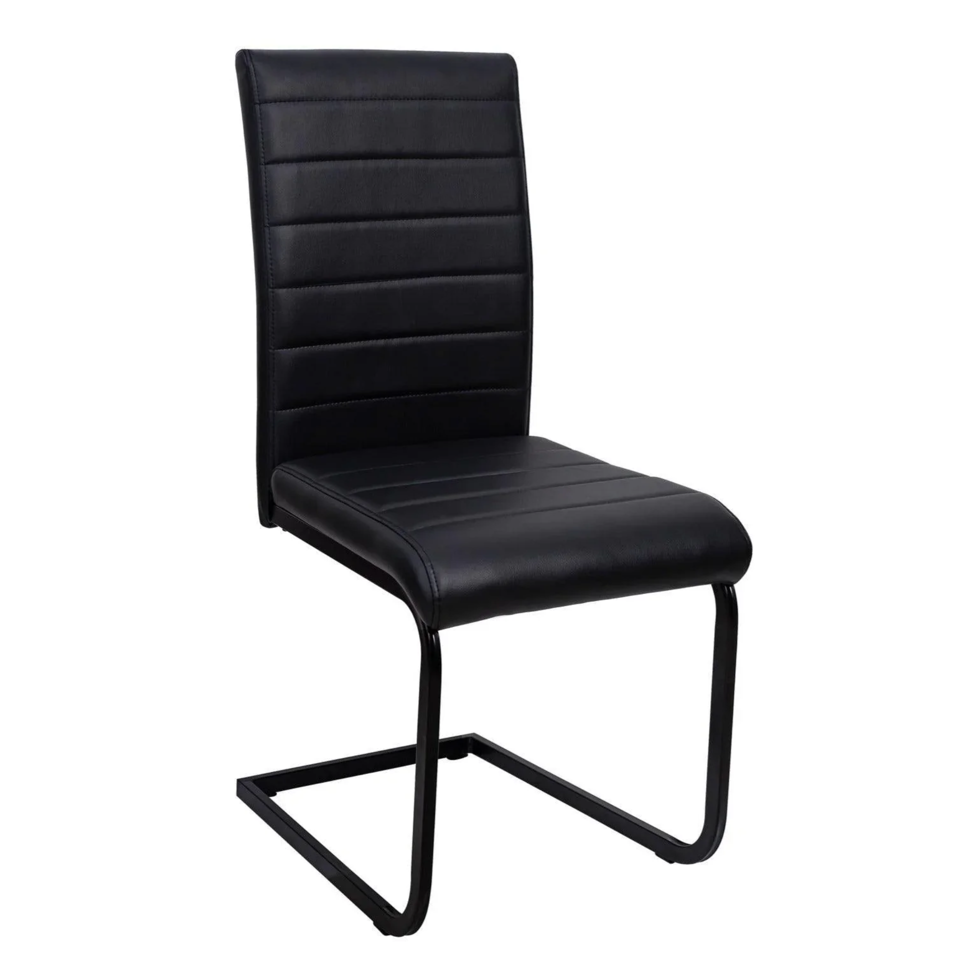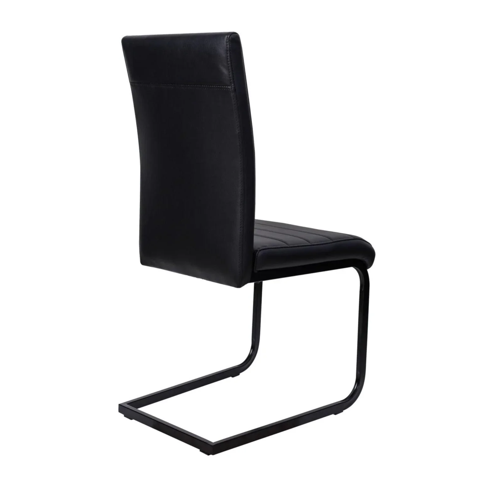 Zwarte PU stoel met sledepoot in het zwart afgewerkt.