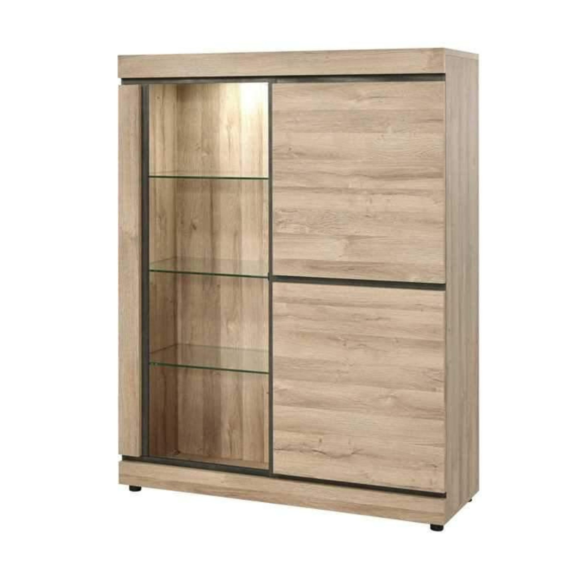 Deze Vitrine Marnix heeft als afwerking French Oak. Deze prachtige afwerking is te bezichtigen in de detail foto. Deze Vitrine is apart te verkrijgen of in de Eetkamerset Nancy.
