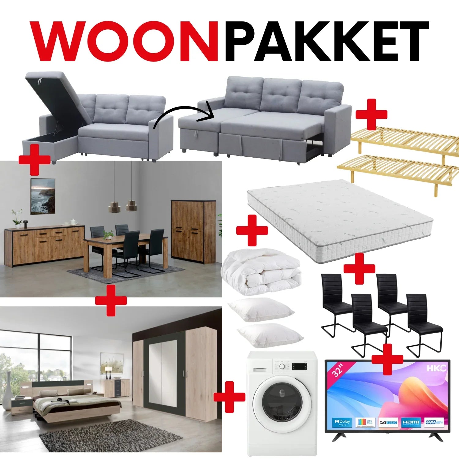 Maar dat is niet alles! Dit onweerstaanbare aanbod bevat ook een 32-inch televisie en een handige wasmachine, allemaal inbegrepen. Profiteer nu van deze super promotie en richt je hele huis in met gemak en stijl. Maak van jouw huis een thuis met het All-in House woonpakket. 🏡✨